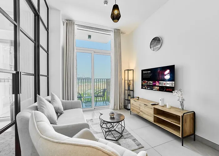 Con vista sulla città, quest'appartamento con 1 camera da letto, Chic 1Br In Socio Dubai Hills Near Park And Mall offre agli ospiti un ascensore. A una distanza di 4 km dall'appartamento si trova il Distretto artistico di Alserkal Avenue.